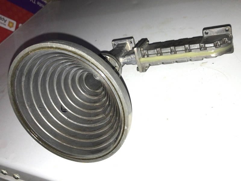Descripción: Plato de Fibra de Vidrio reforzado Banda KU y KA, de fabricación nacional para Transmisión y Recepción, incluye Feed Horn Prodeline.